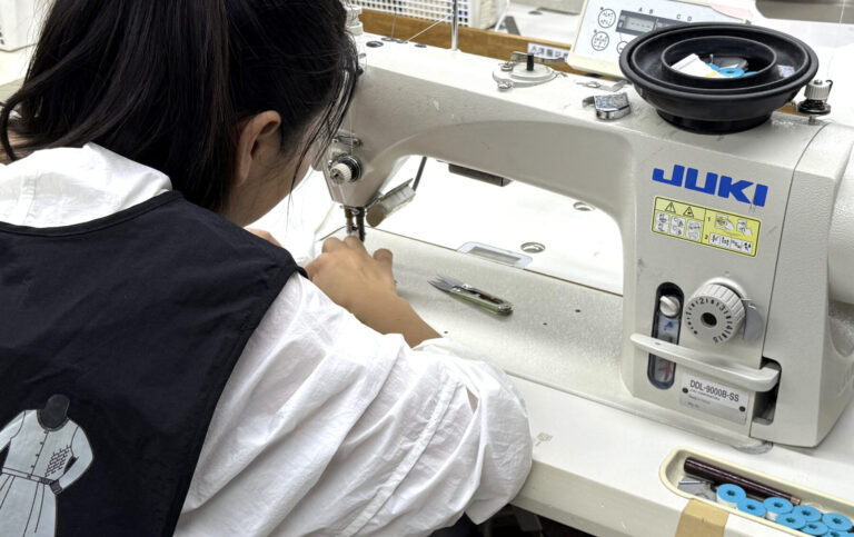 縫製チームと連携しながら、効率と品質の両立を目指すものづくりの現場です。